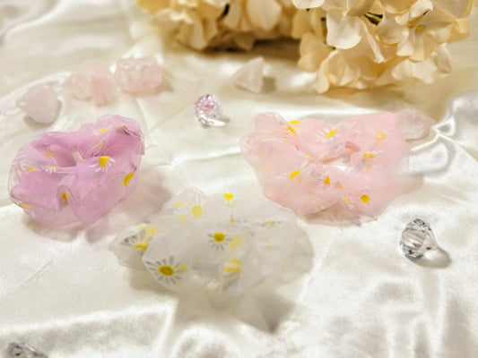 Floral Organza Scrunchie – Flower Girl Gift, Kids Hair Accessory, Girls Hair Tie in Pink, Lilac or White – FGHSC01