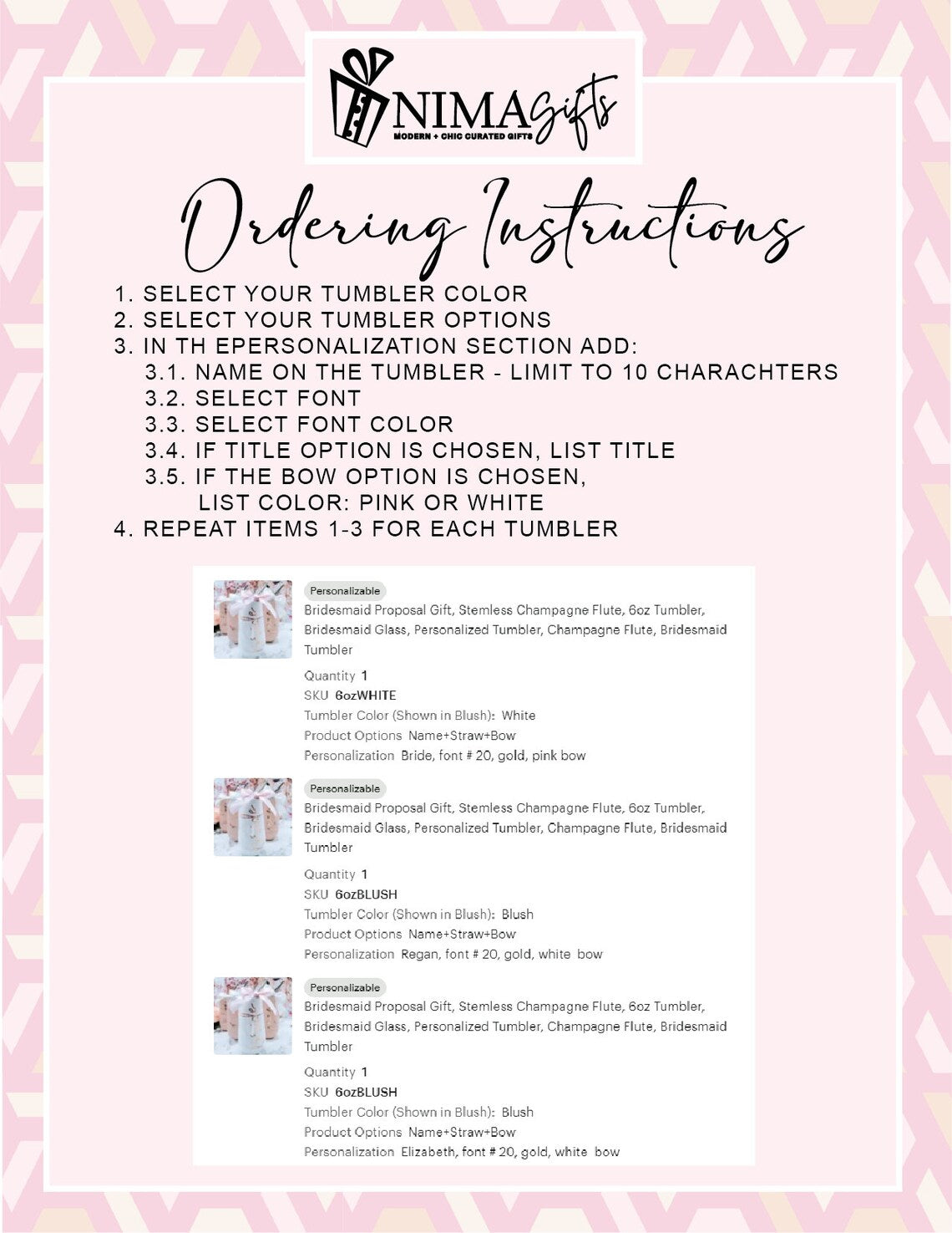 Bridesmaid Proposal Gift, Stemless Champagne Flute, 6oz Tumbler, Bridesmaid Glass, Personalized Tumbler, Champagne Flute, Bridesmaid Tumbler👉🏽👀PLEASE NOTE: If there is no gift message included in your order, a greeting card will NOT be included in your gift box.